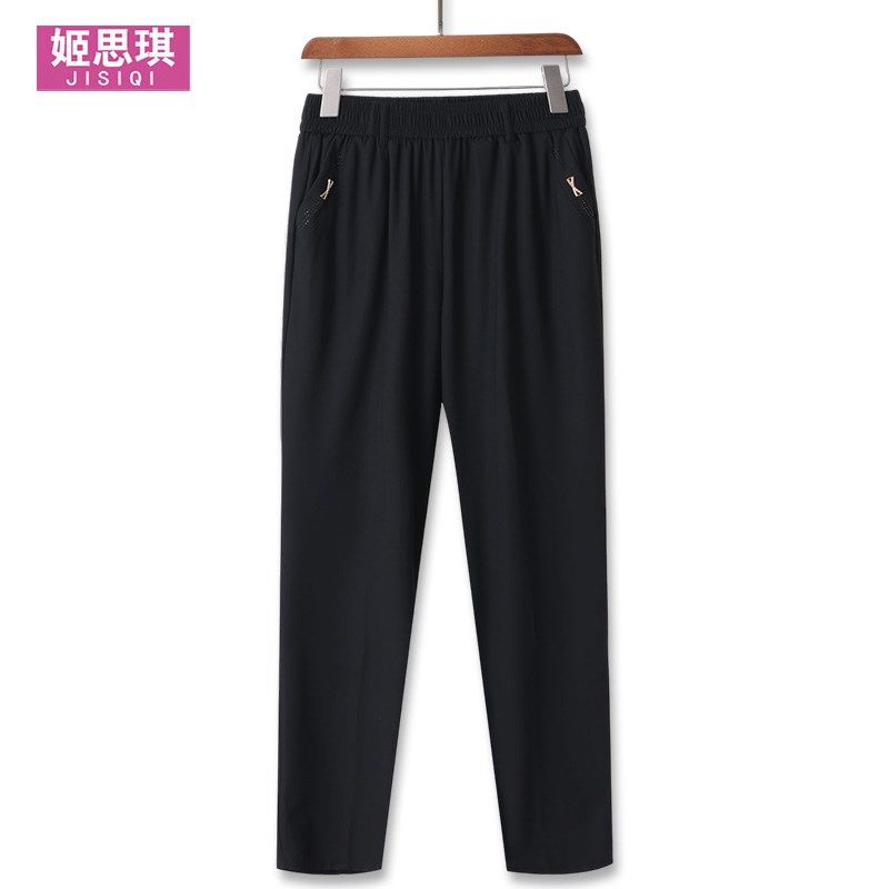 子女夏季 薄款 中年妈妈休闲裤 大码 直筒中老年女裤 裤 冰丝裤 冰丝女裤
