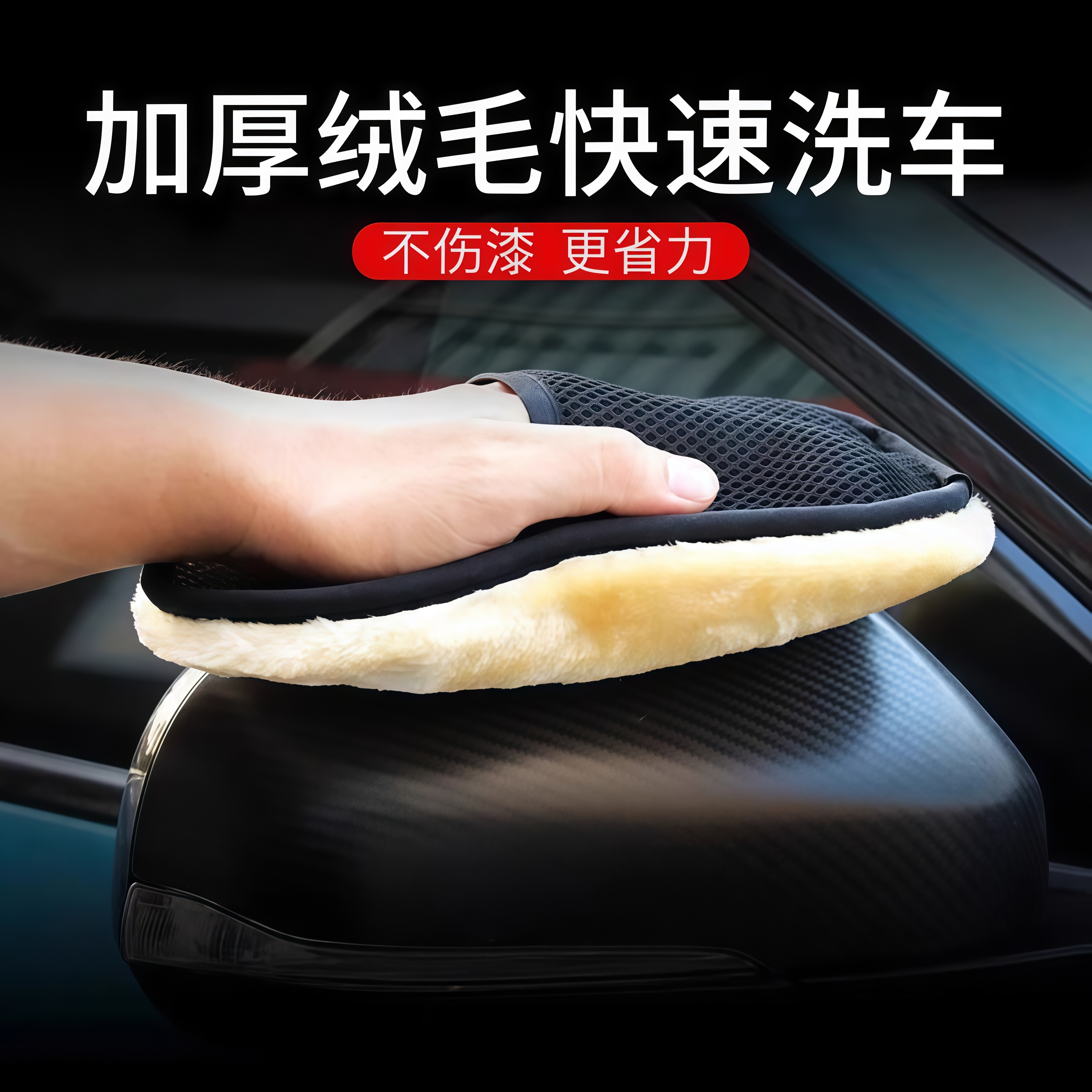 洗车手套毛绒加厚熊掌擦车美容专用不伤漆面不掉毛仿羊毛手掌抹布