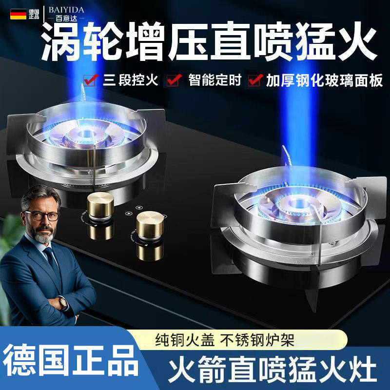 德国高端煤气燃气灶纯铜直喷猛火双灶天然液化气定时嵌入式 灶 台式