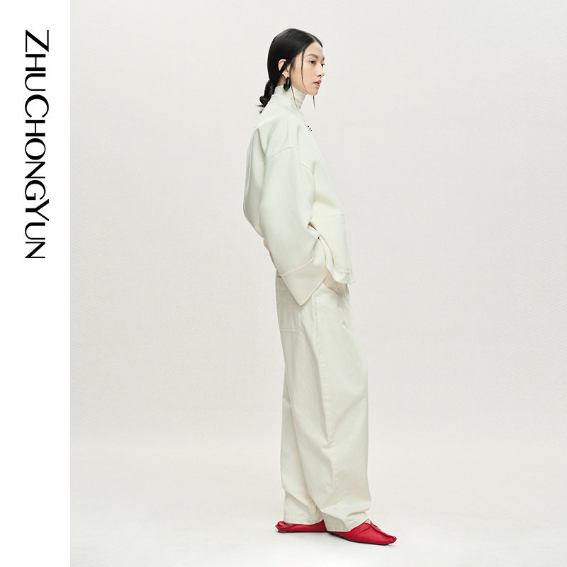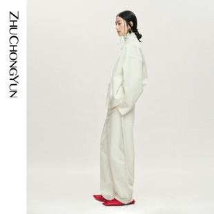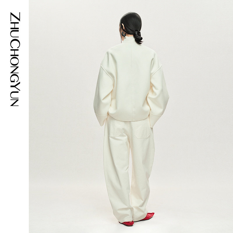 极简东方对襟立领毛呢短外套 ZHUCHONGYUN2026春新款 澳洲羊毛