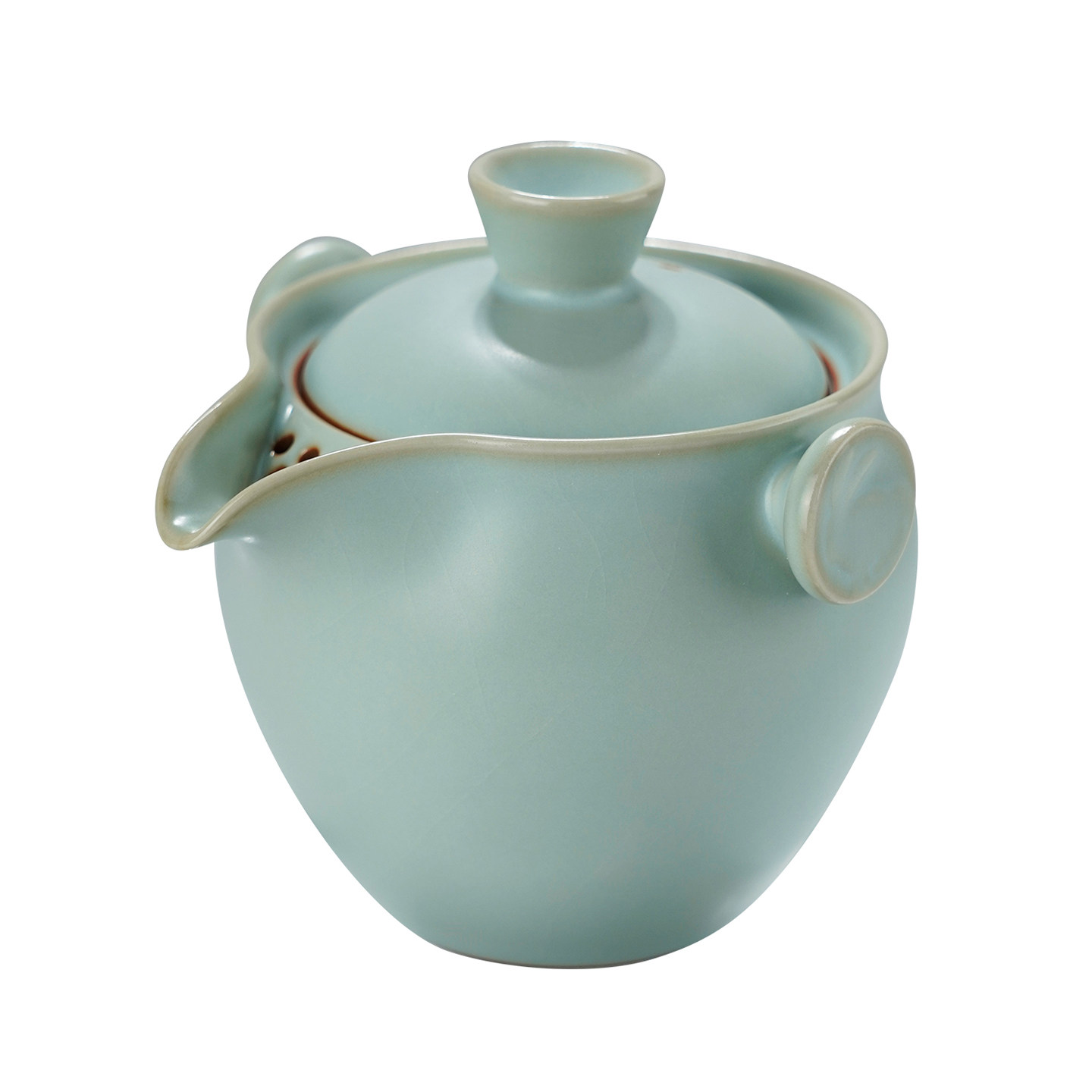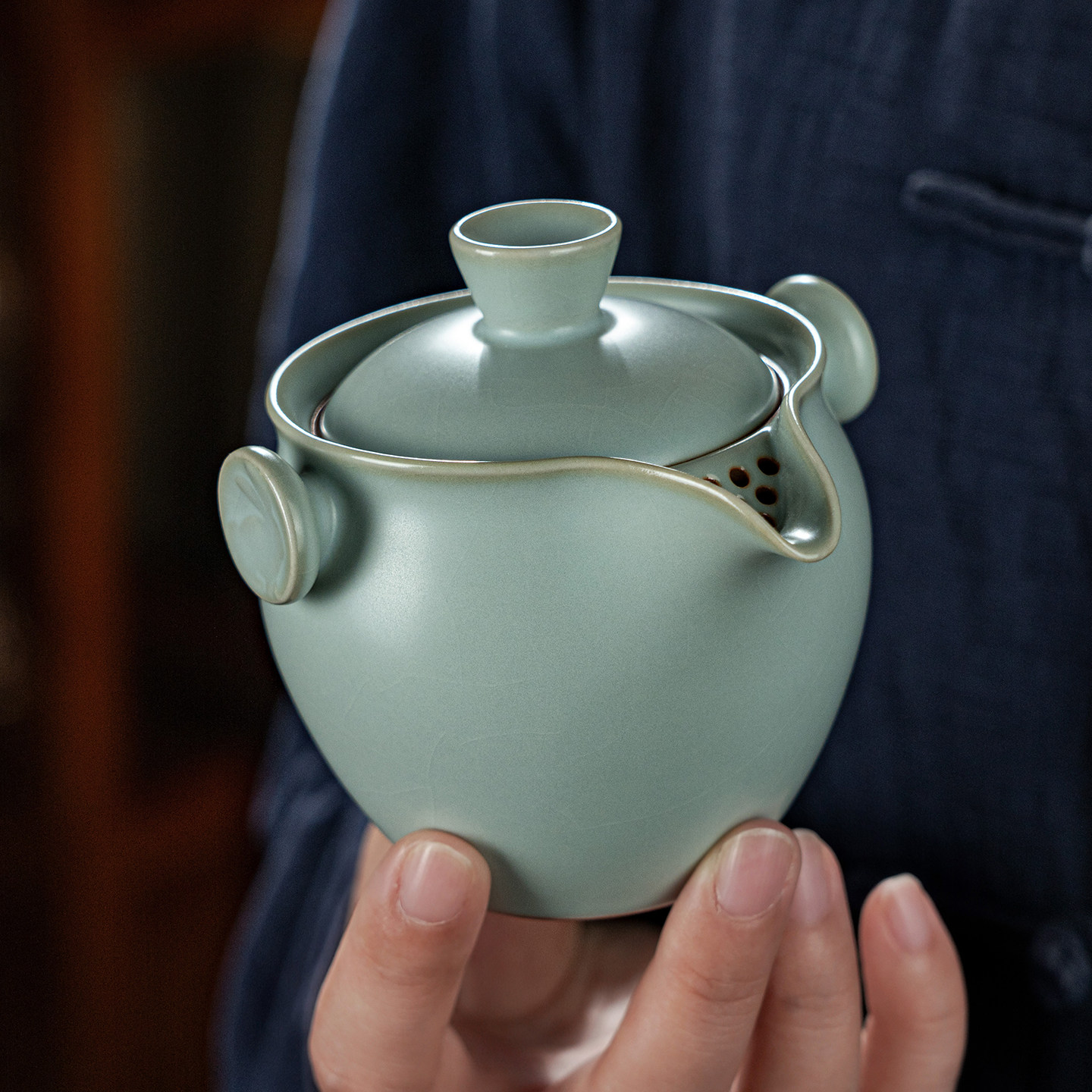青澹汝窑旅行茶具户外便携式 快客杯单个手抓碗景德镇功夫茶具陶瓷