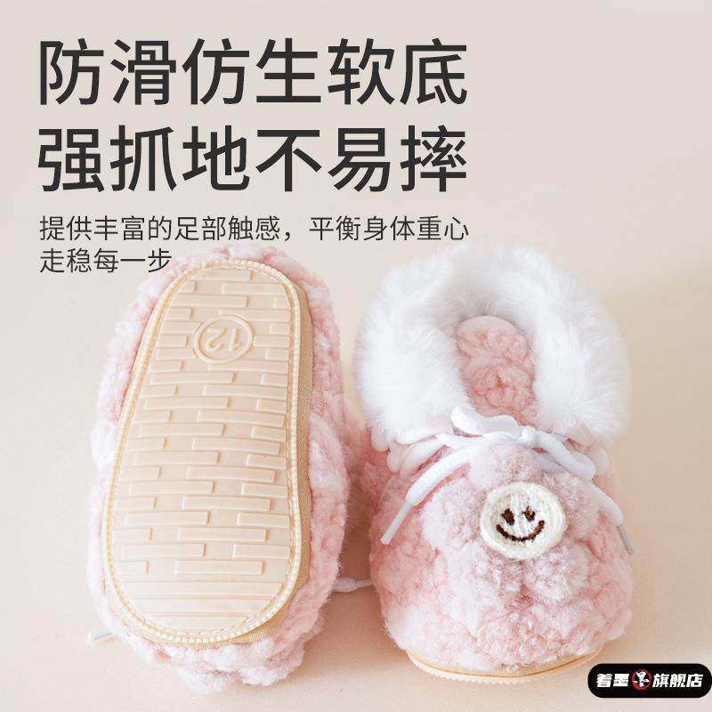 家居保暖学步鞋 秋冬款 宝宝冬季 卡通毛绒包跟棉拖鞋 加绒 婴幼儿棉鞋