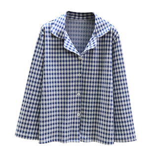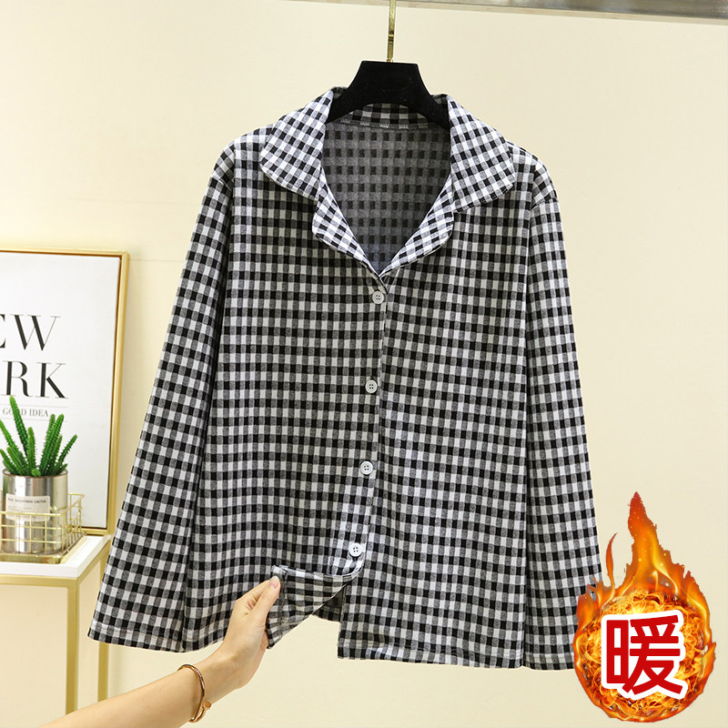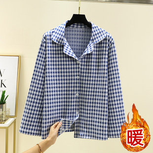 加绒加厚长袖 外套大码 上衣 女冬居家宽松格子开衫 德绒保暖睡衣上装