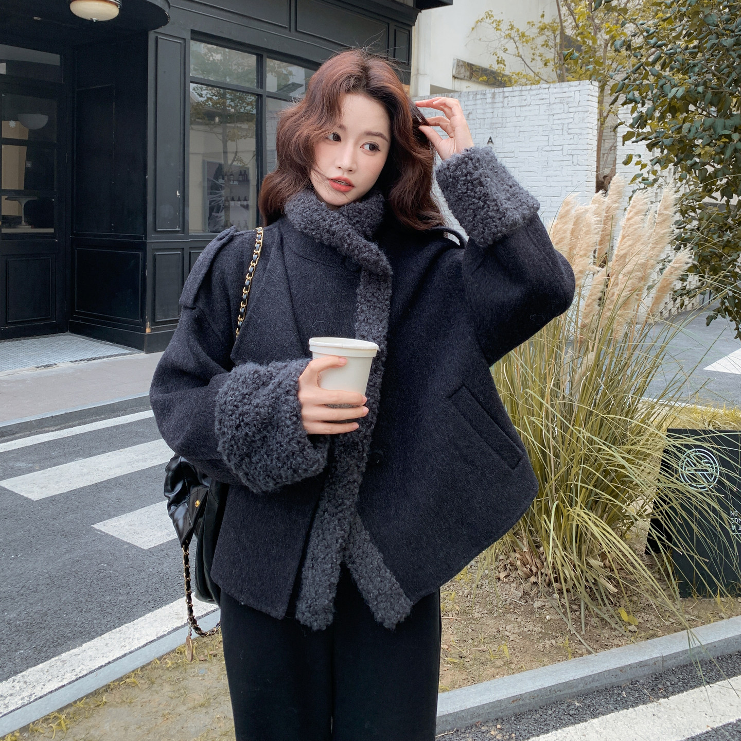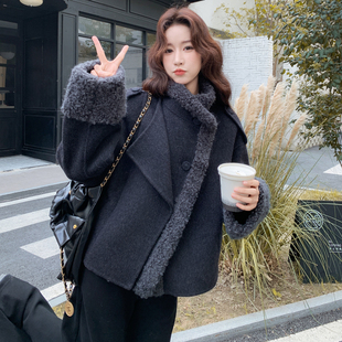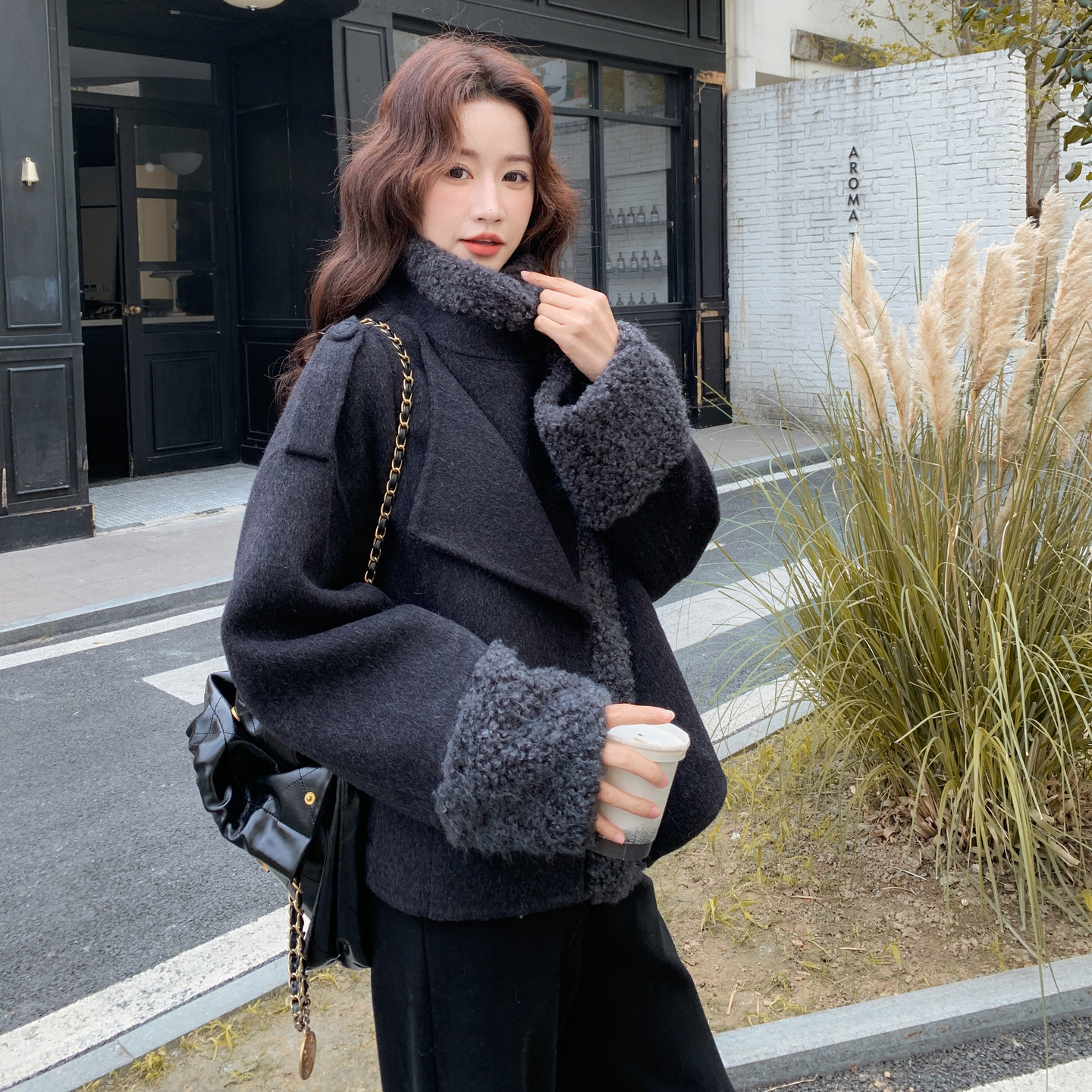 568P285K418 大翻领双面呢羊毛大衣女外套2C325 数据爆款 现货