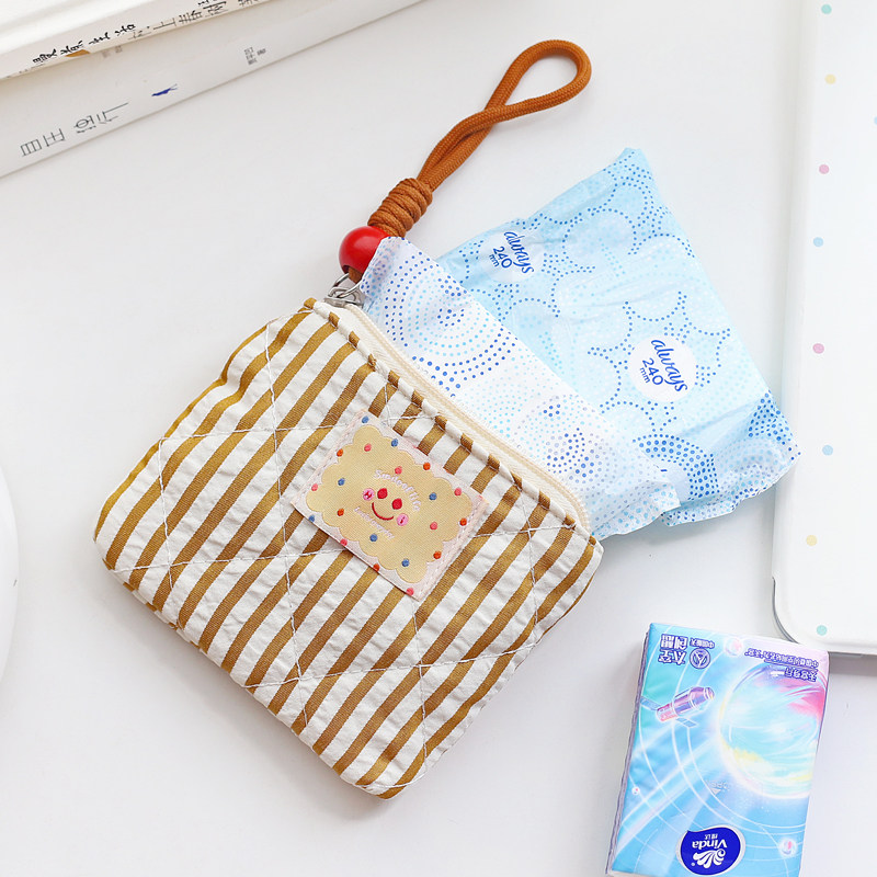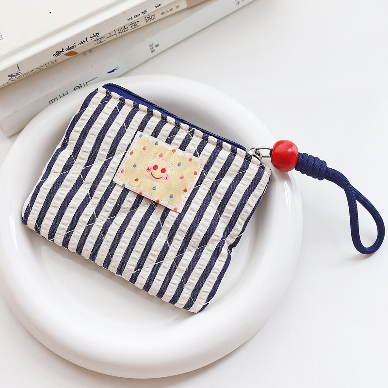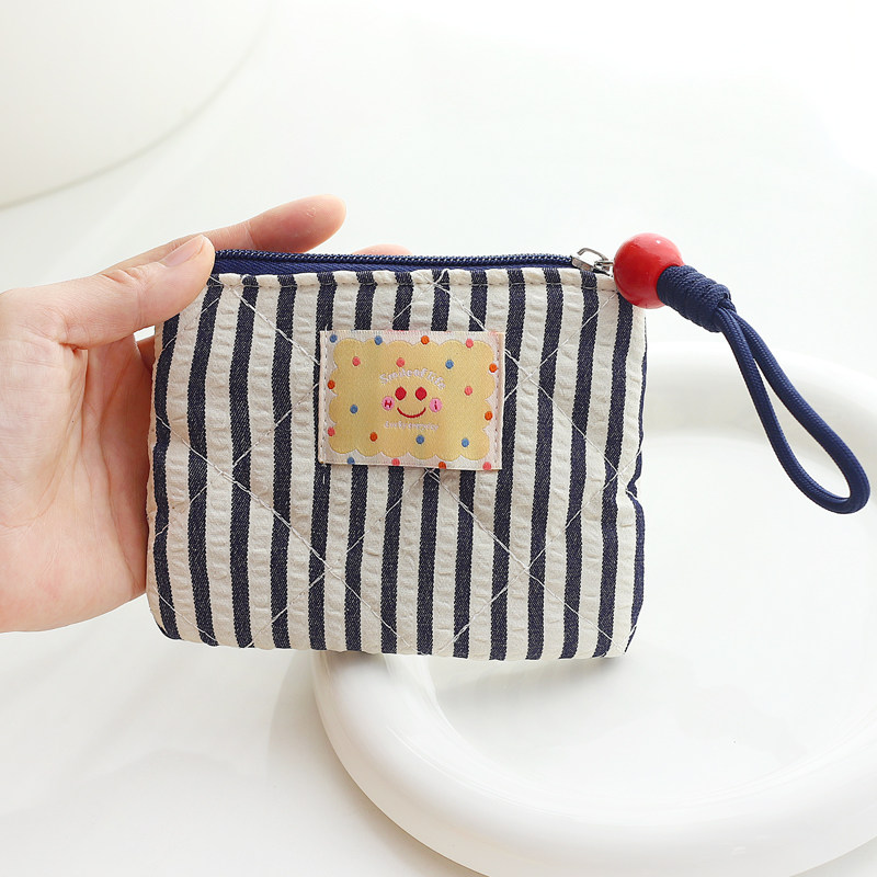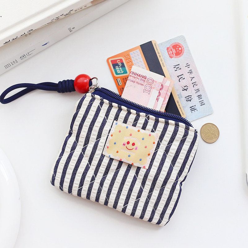 韩国可爱笑脸创意条纹帆布艺迷你零钱包硬币包袋女学生拉链小钱包