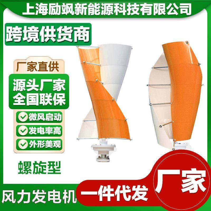 螺旋型100W垂直轴磁悬浮微风启动风力发电机家用风光互补路灯