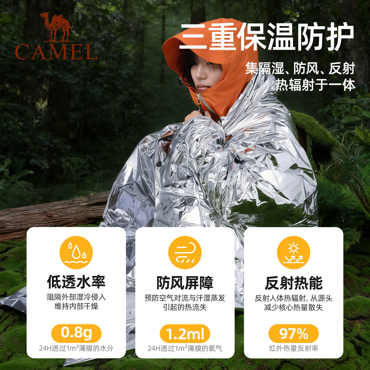 骆驼应急保温毯野外防失温毯加厚防寒装 备保暖救生毯户外急救毯