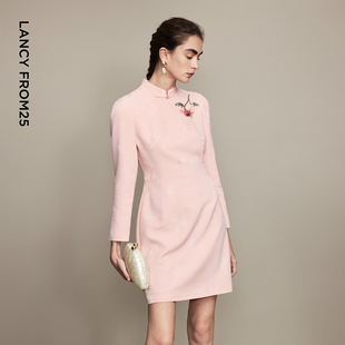 改良旗袍盘扣法绣气质连衣裙2026年春季 朗姿新中式 新款 兰亭叙