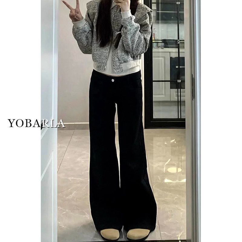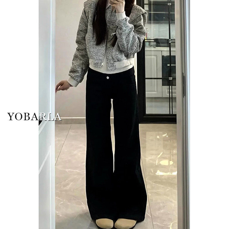 KZ真维斯高腰阔腿百搭加绒牛仔裤 女直筒宽松休闲秋冬小个子九分裤