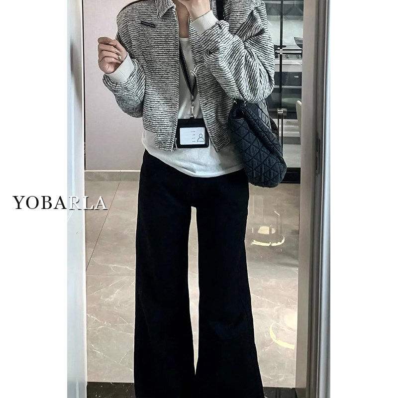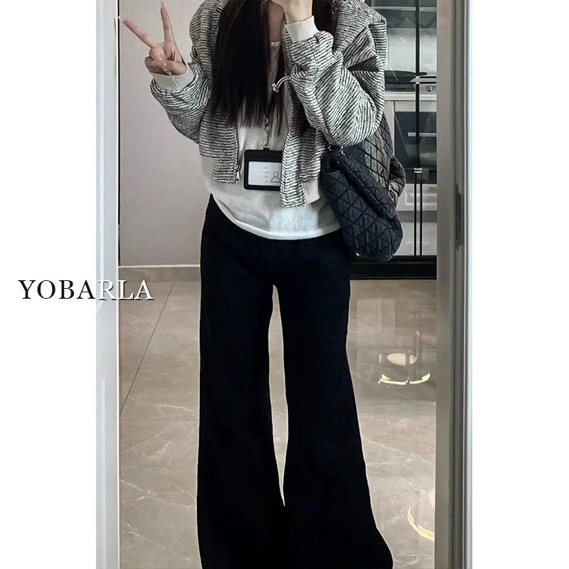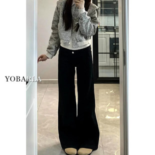 加绒牛仔喇叭裤 AMR 高腰显瘦微喇小黑裤 超模大长腿 女秋冬新