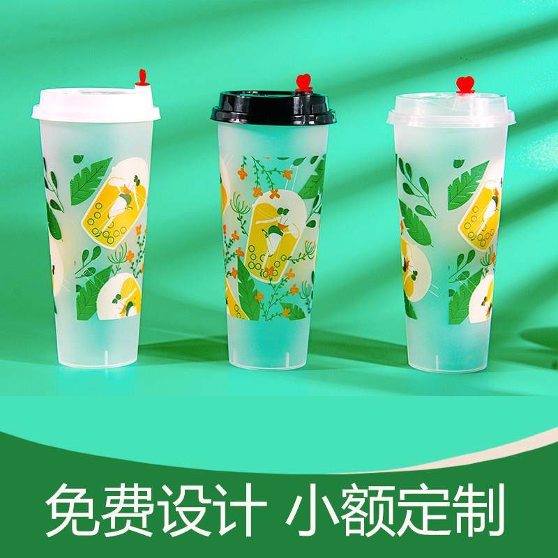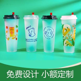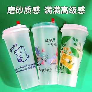 定制奶茶杯磨砂杯700ml一次性塑料杯带盖注塑饮料冷饮打包杯商用