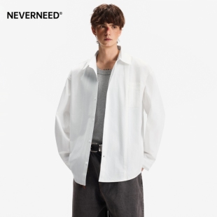 美式 男春季 cleanfit通勤休闲衬衣 衬衫 NEVERNEED解构翻领白色长袖