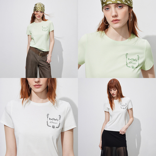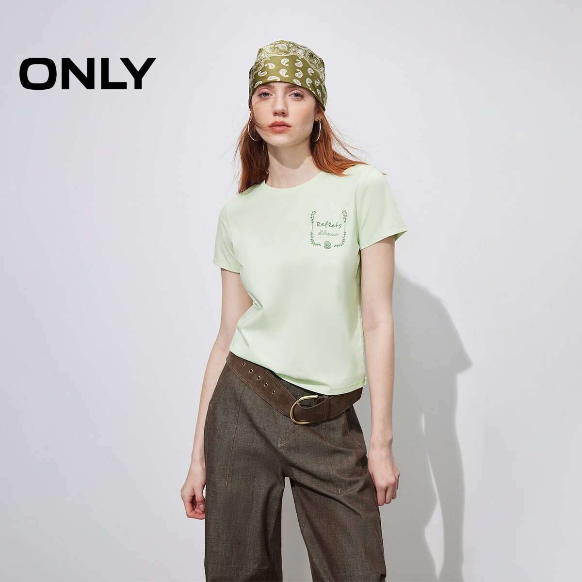 T恤女 简约字母印花显瘦正肩圆领短袖 绫致ONLY2026春季 新款