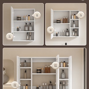 浴室镜柜简约挂墙式 镜箱收纳分层架洗手间梳妆防水镜子卫生间