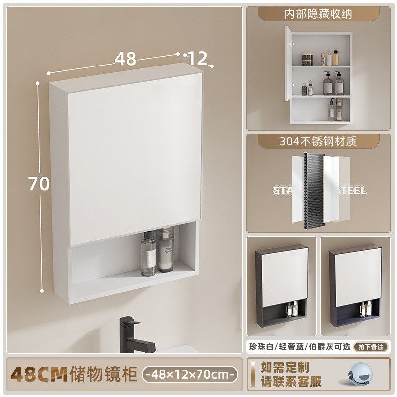 304不锈钢智能浴室镜柜卫生间挂墙式 镜箱单独洗手间镜子带置物架