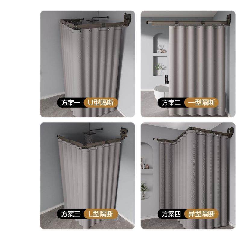 卫生间洗澡遮挡浴帘布防霉防水浴室淋浴干湿分离隔断门帘子窗帘杆