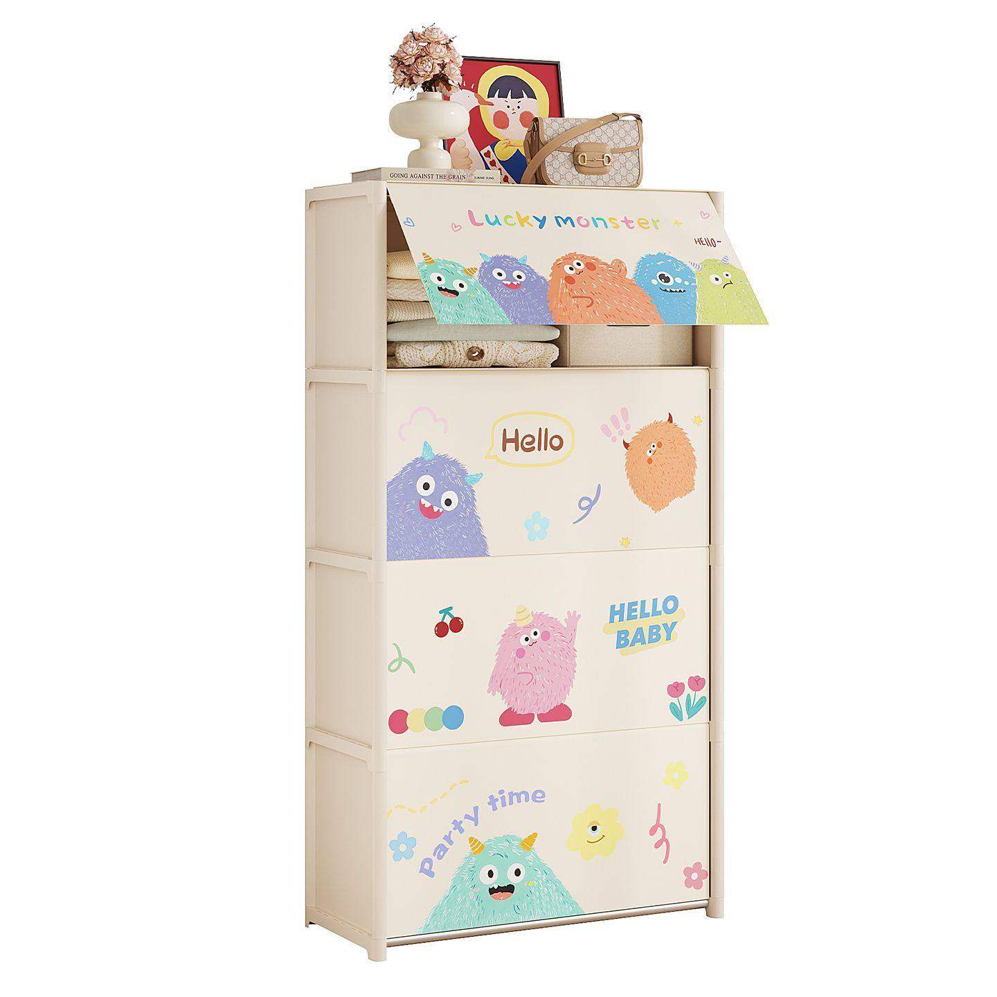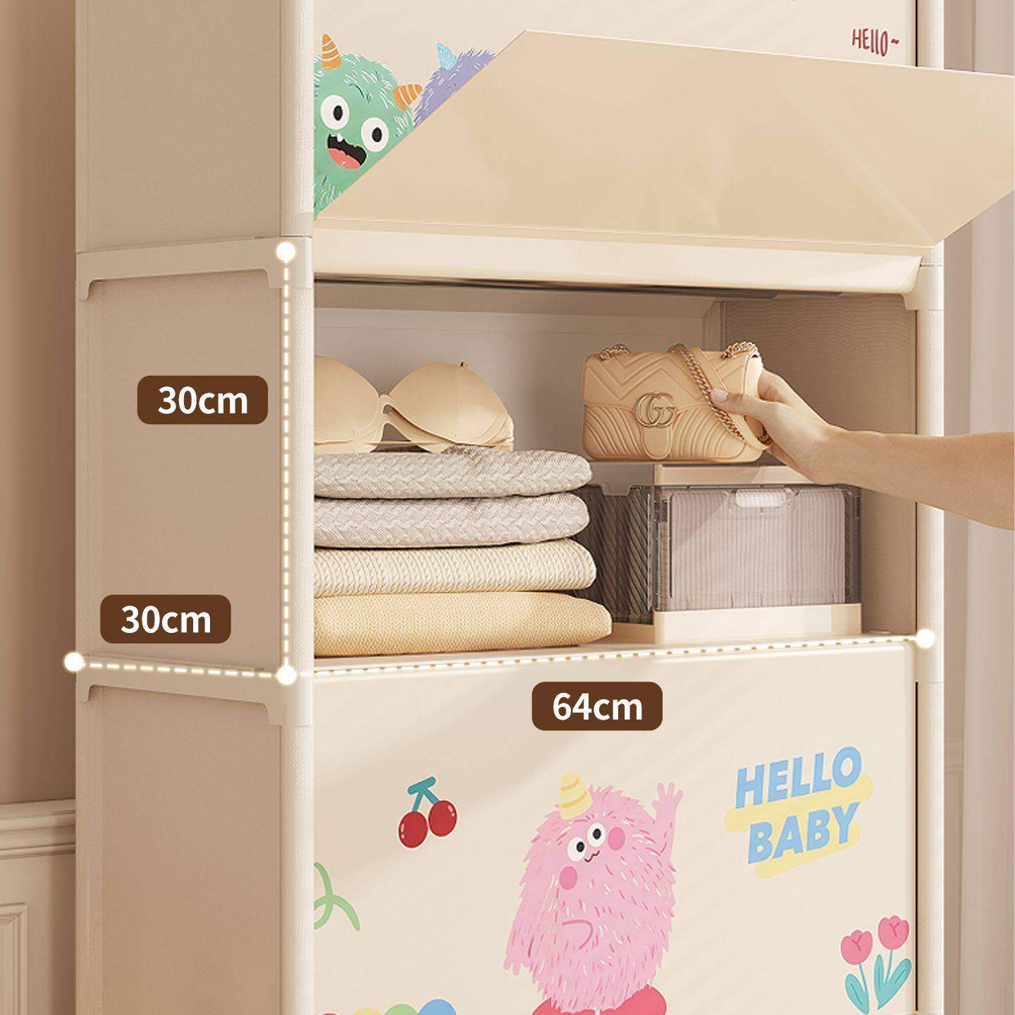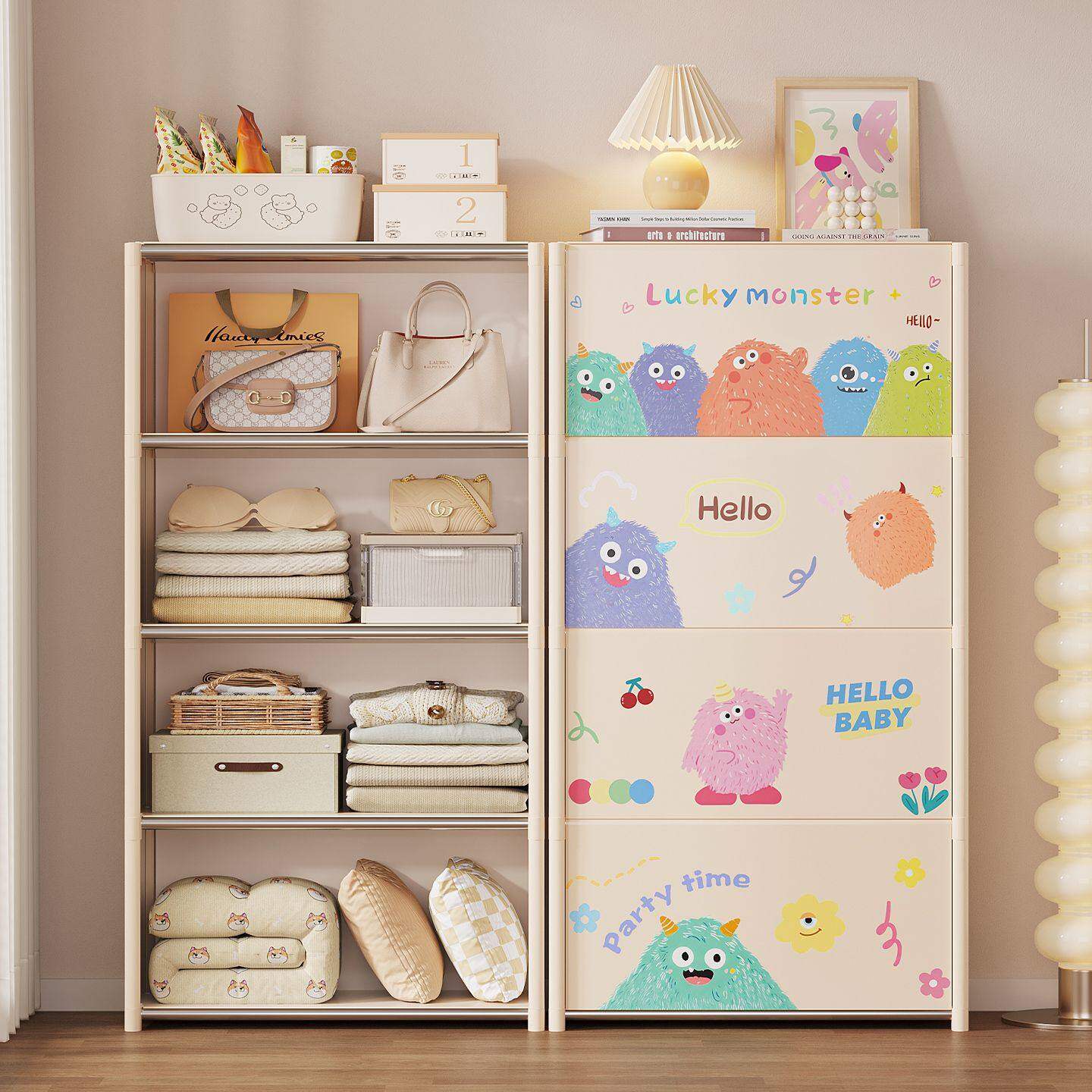 简易衣柜落地多层室内卡通带门衣服收纳柜防尘置物架大容量省空间