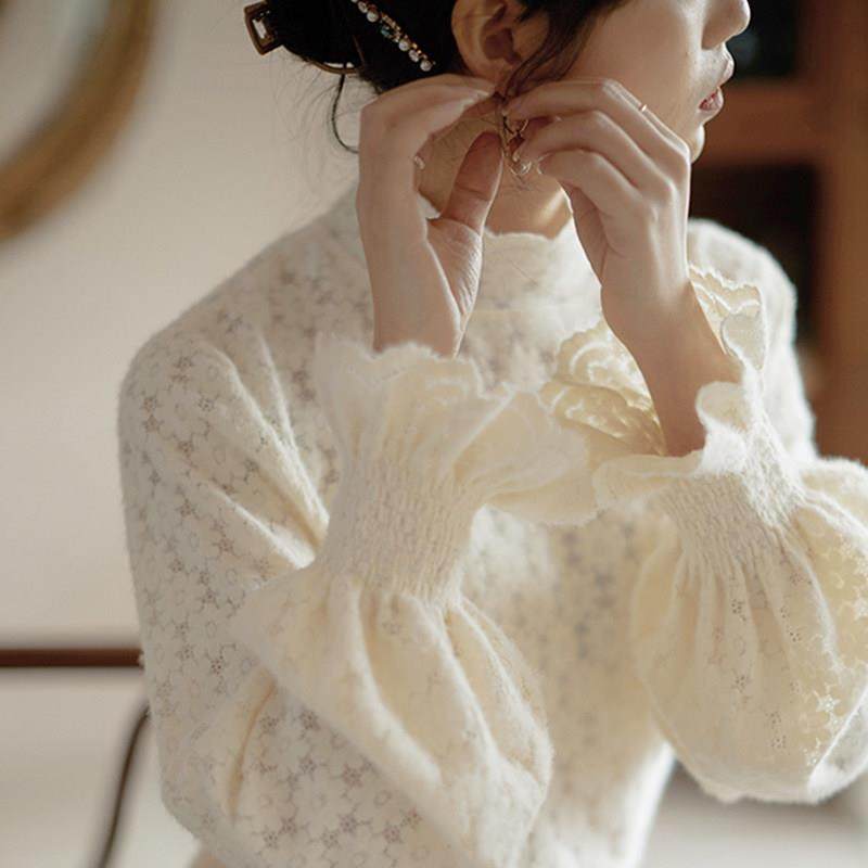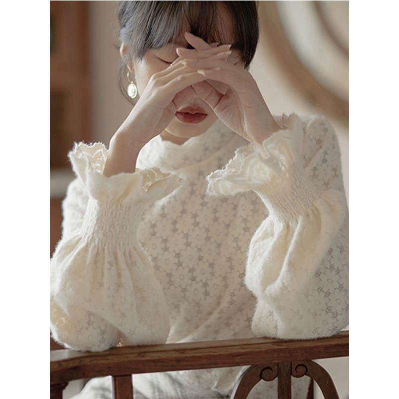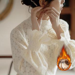 高领磨毛蕾丝打底衫 加绒加厚1219e 女配毛衣秋冬洋气内搭高端小衫