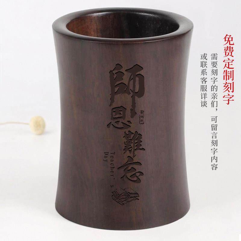 黑檀木实木笔筒创意艺术摆件 木质笔筒定制刻字 办公室桌面收纳筒