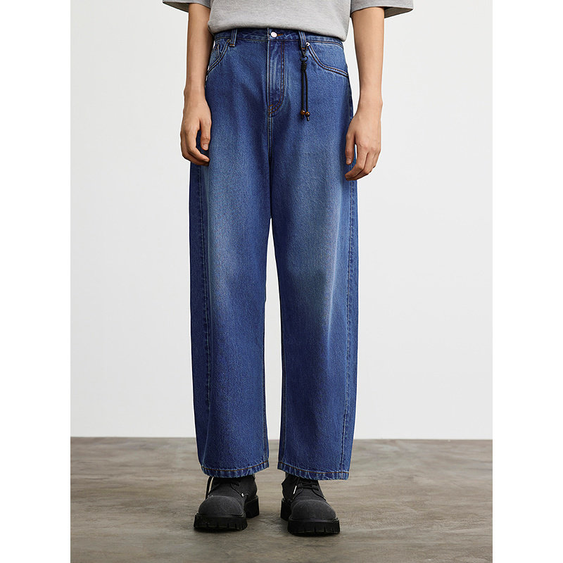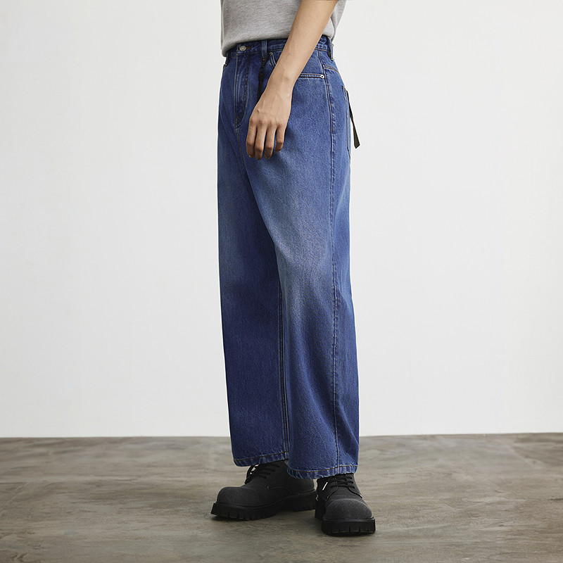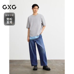 男裤 GXG男装 通勤牛仔裤 蓝色宽松长裤 25年春G25X051020 商场同款