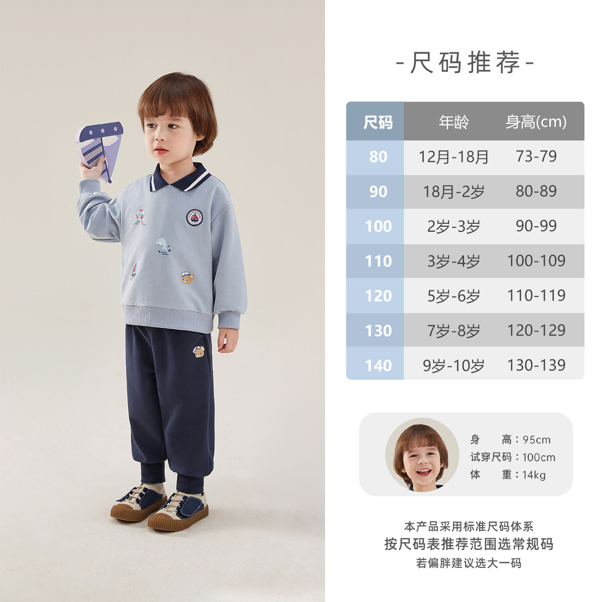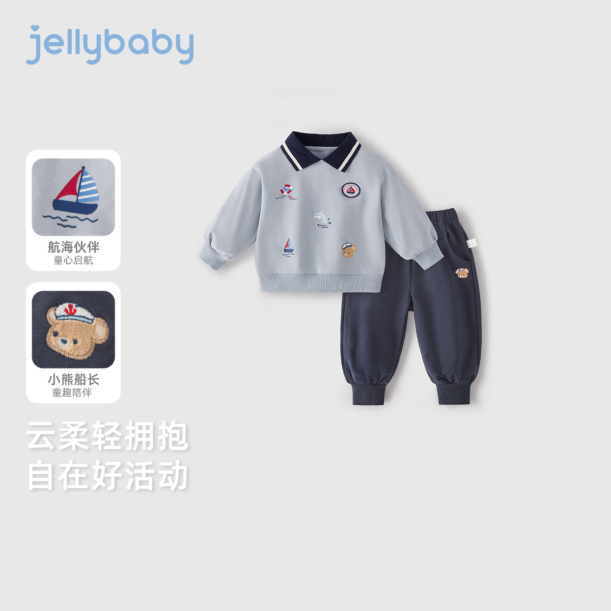 jellybaby男童套装 男孩 春儿童3帆船绣花polo领卫衣两件套宝宝春装