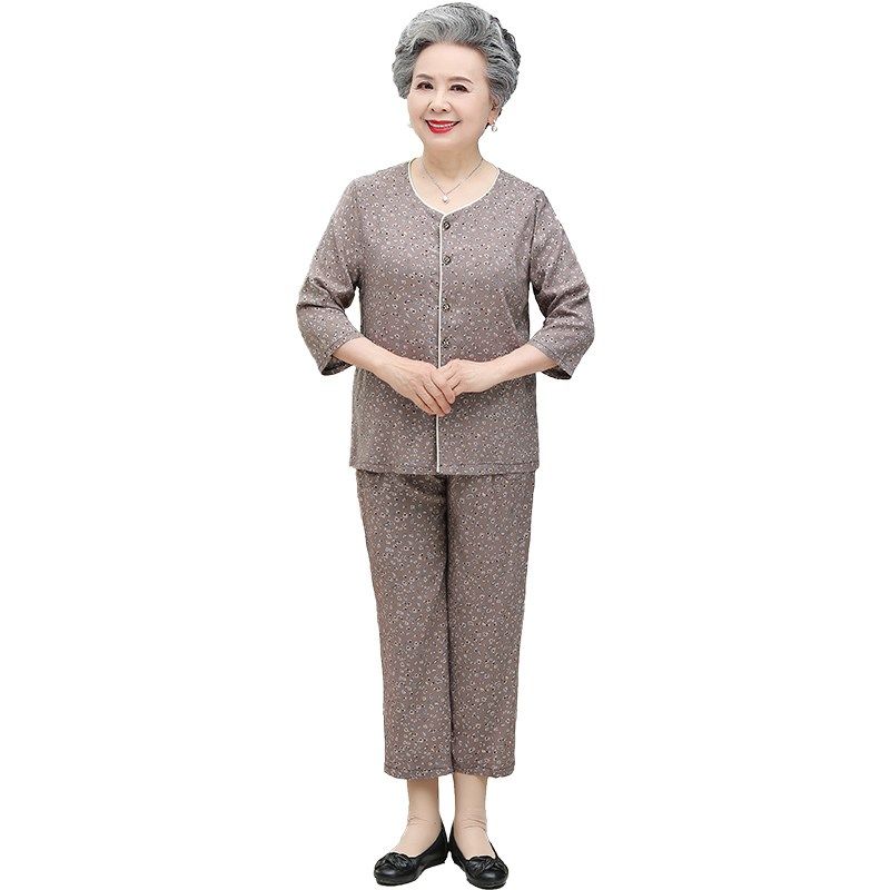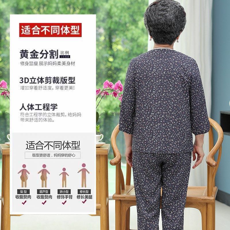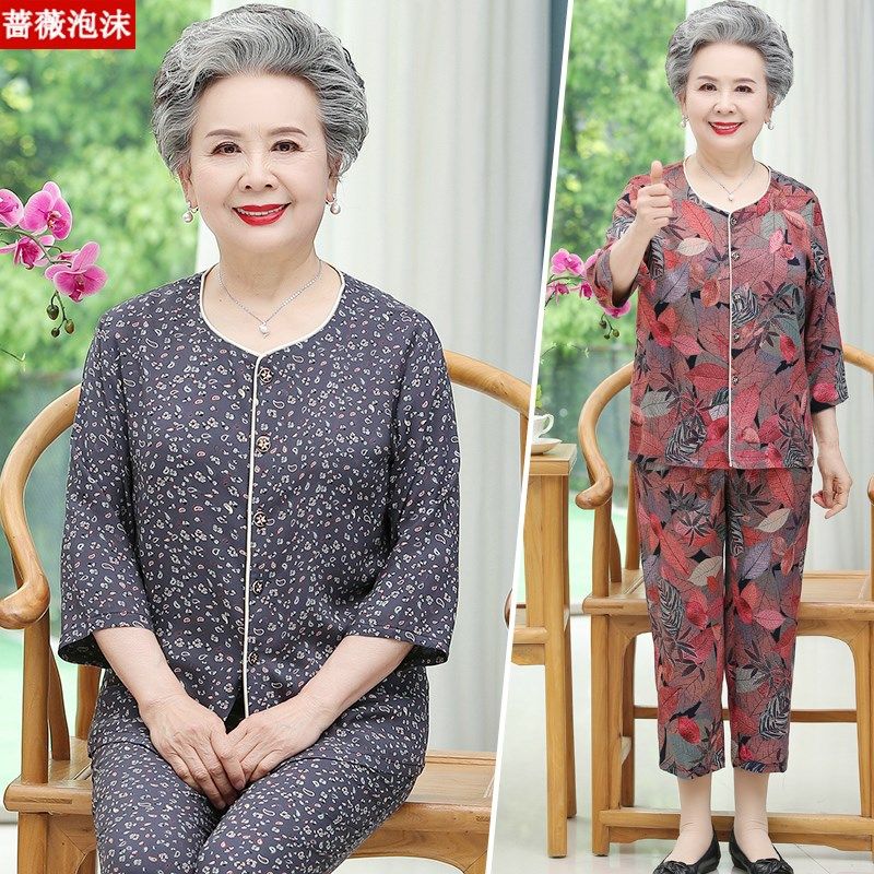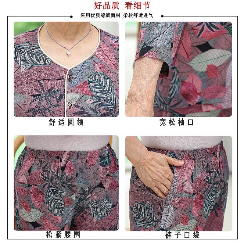 套装 纯棉睡衣婆婆薄开衫 妈妈全棉家居衣服奶奶夏季 中老年人女夏装