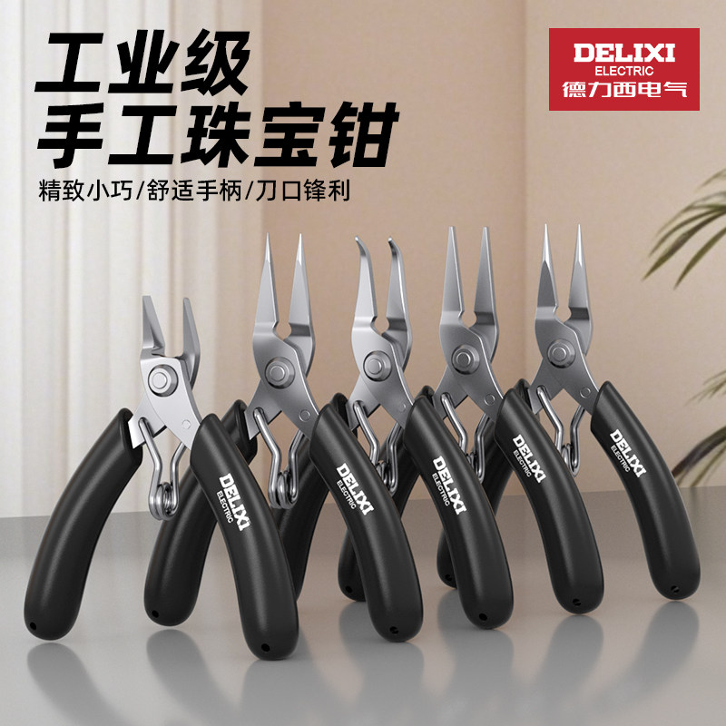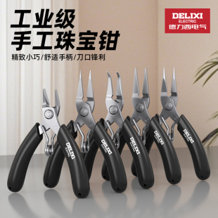 德力西电气尖嘴钳圆嘴钳手工钳子尖头平口迷你弯嘴珠宝钓鱼维修