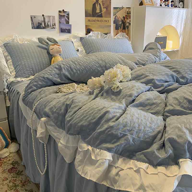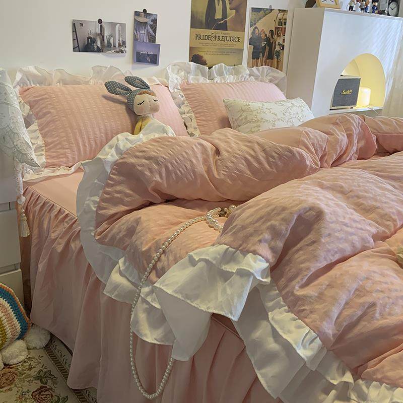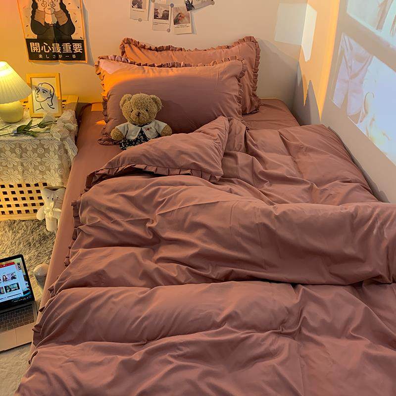 双层纱全棉印花四件套多层纱纯棉套件纯色简约可爱小清新印花床品
