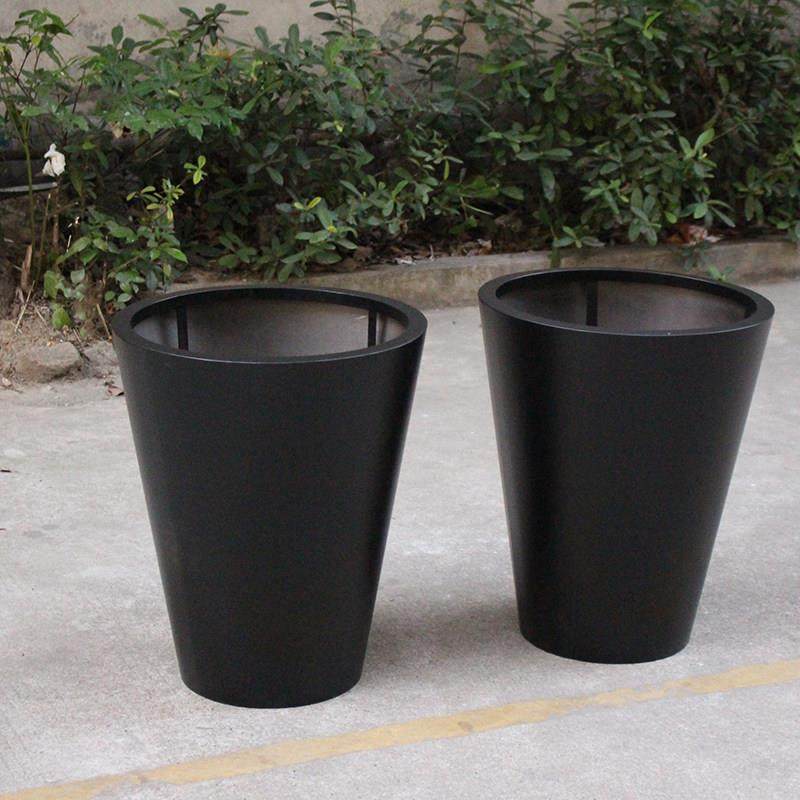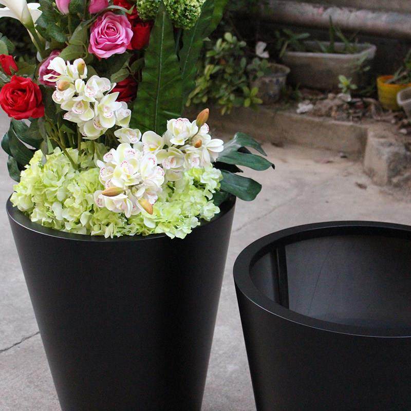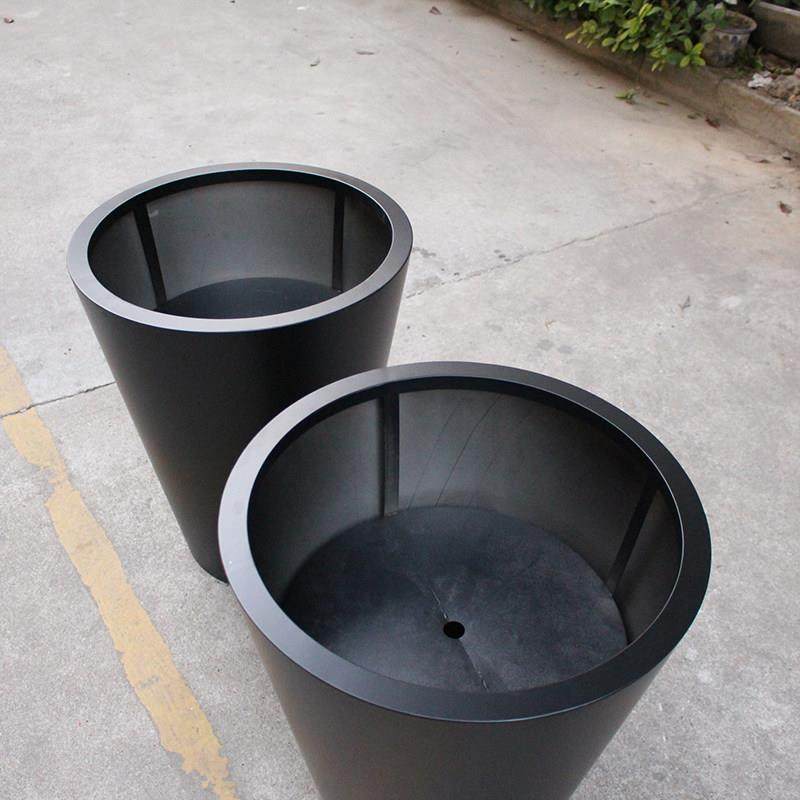 不锈钢花盆 酒店花器 户外花箱 哑光黑 定制 组合隔断盆 大型圆锥