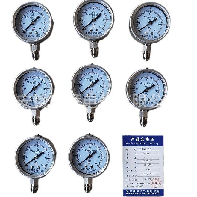 0.6Mpa 6bar双刻度值0 双刻度值Y 60B不锈钢压力表0