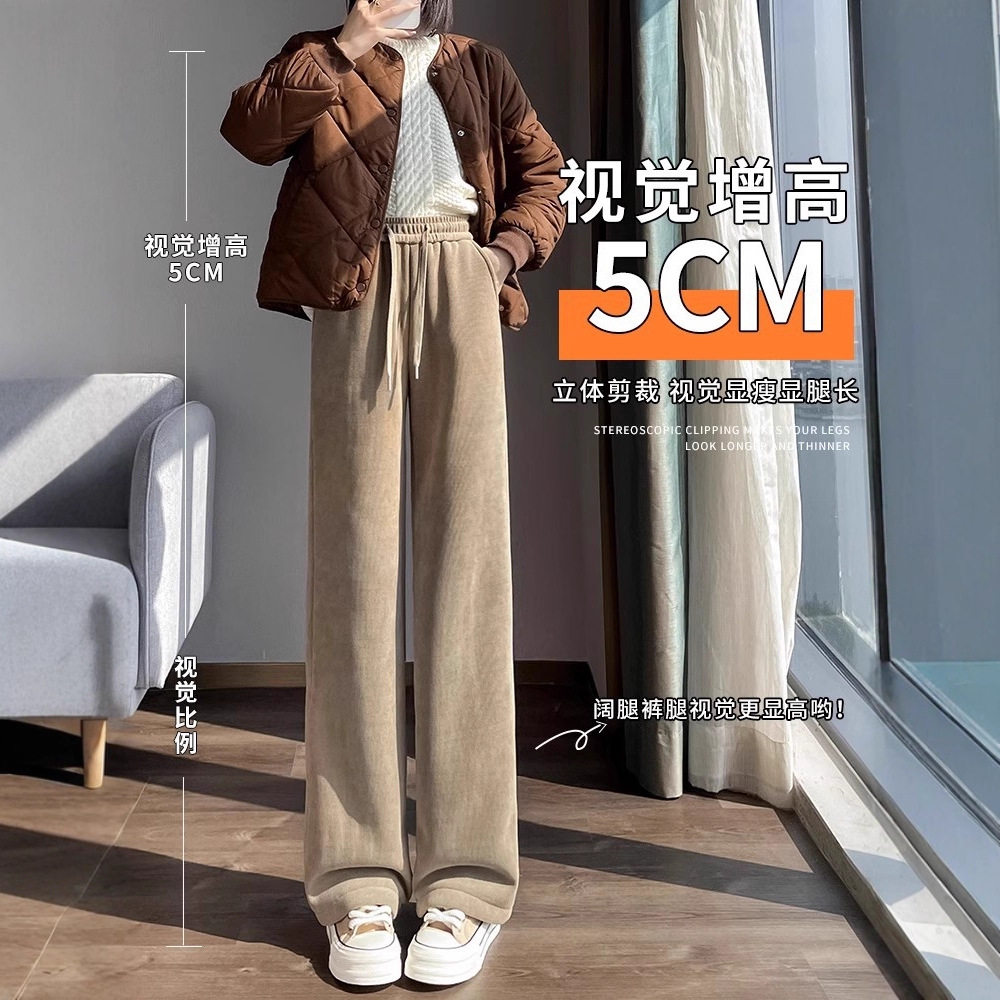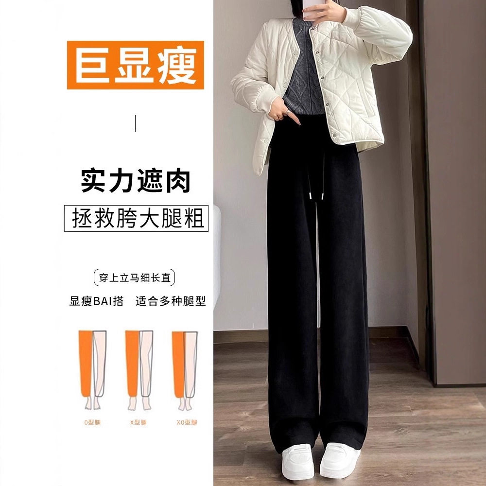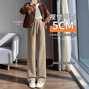 加绒加厚羊绒阔腿裤 子女秋冬宽松显瘦垂感休闲直筒拖地小个子长裤