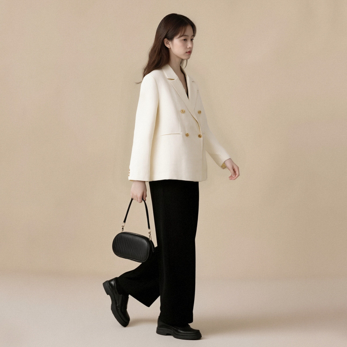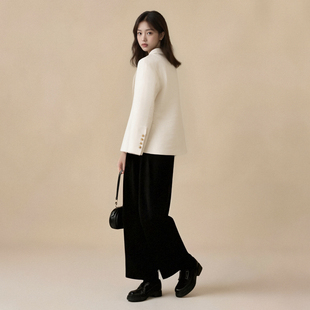 外套HA9218001 西装 西町村屋肌理感丝麻便西女春新款 桑蚕丝中长款
