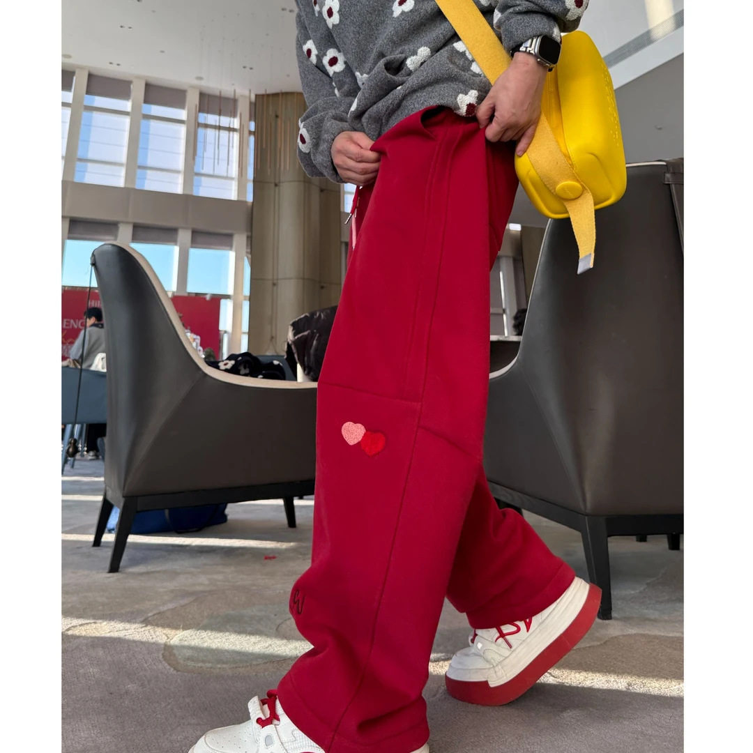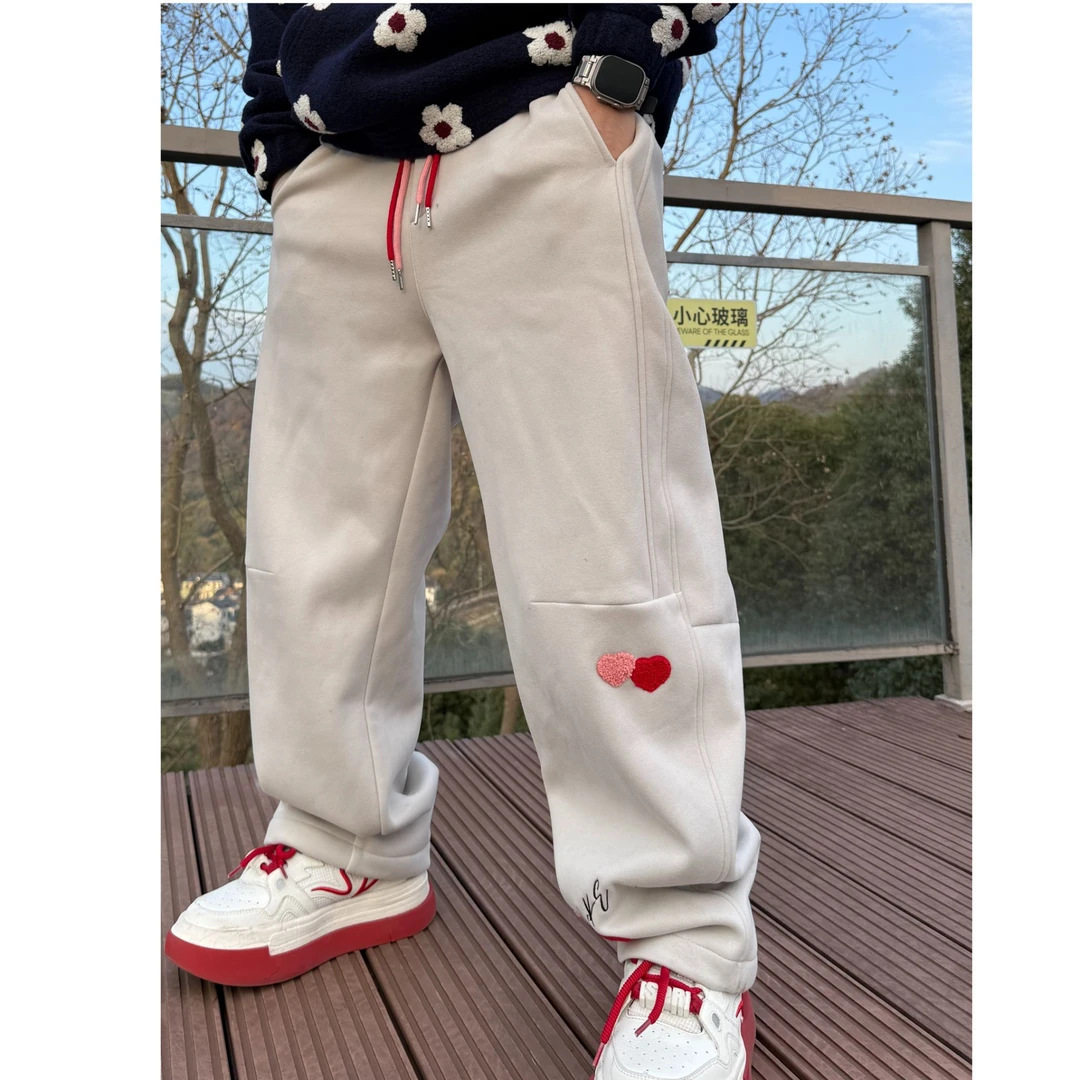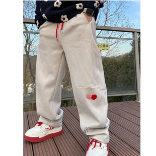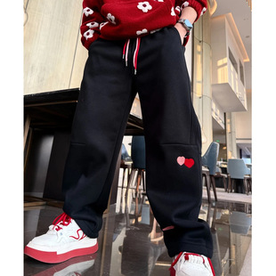 休闲裤 冬季 百搭加绒加厚松紧腰撞色抽绳宽松男款 植绒贴布时尚 新款
