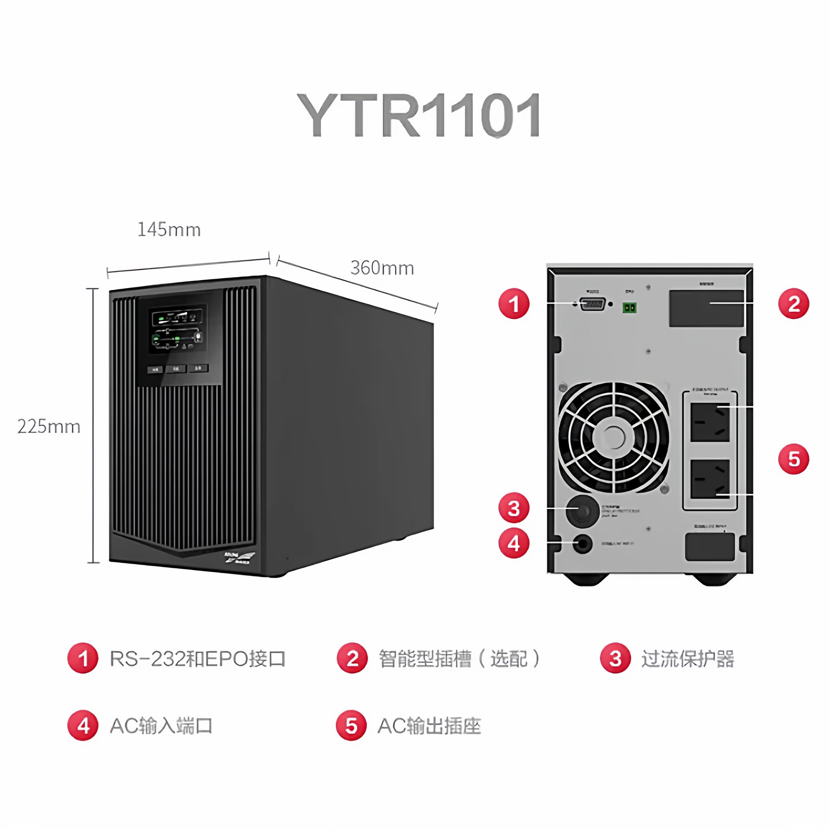 YTR1101L 1KVA 8小时 900W延时半1 科华UPS不间断电源YTR1101