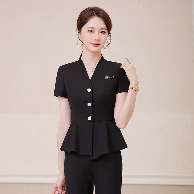 短袖 女工装 2025新款 套装 职业套裙 高级感西装 珠宝店工作服女夏薄款