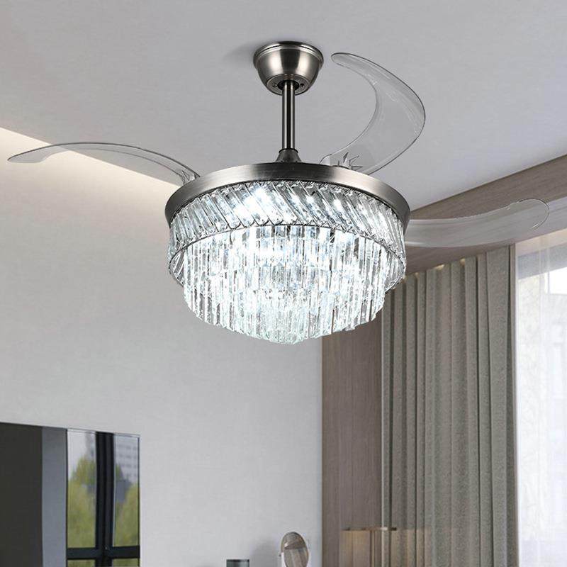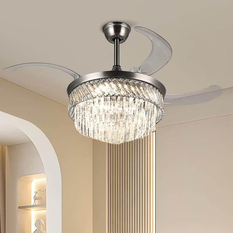 客厅卧室隐形风扇灯铬色智能控制餐厅吊扇装 饰水晶吊扇灯外贸