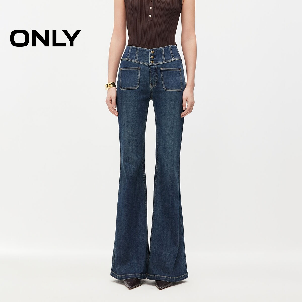 喇叭牛仔裤 复古水洗高腰V字腰头修身 ONLY2026春季 女 腿精PLUS