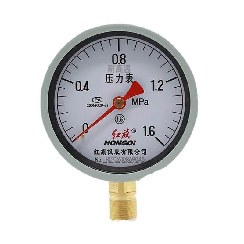 红旗牌仪表YTH 耐高温压力表 100蒸气表水压表银焊径向耐温100℃