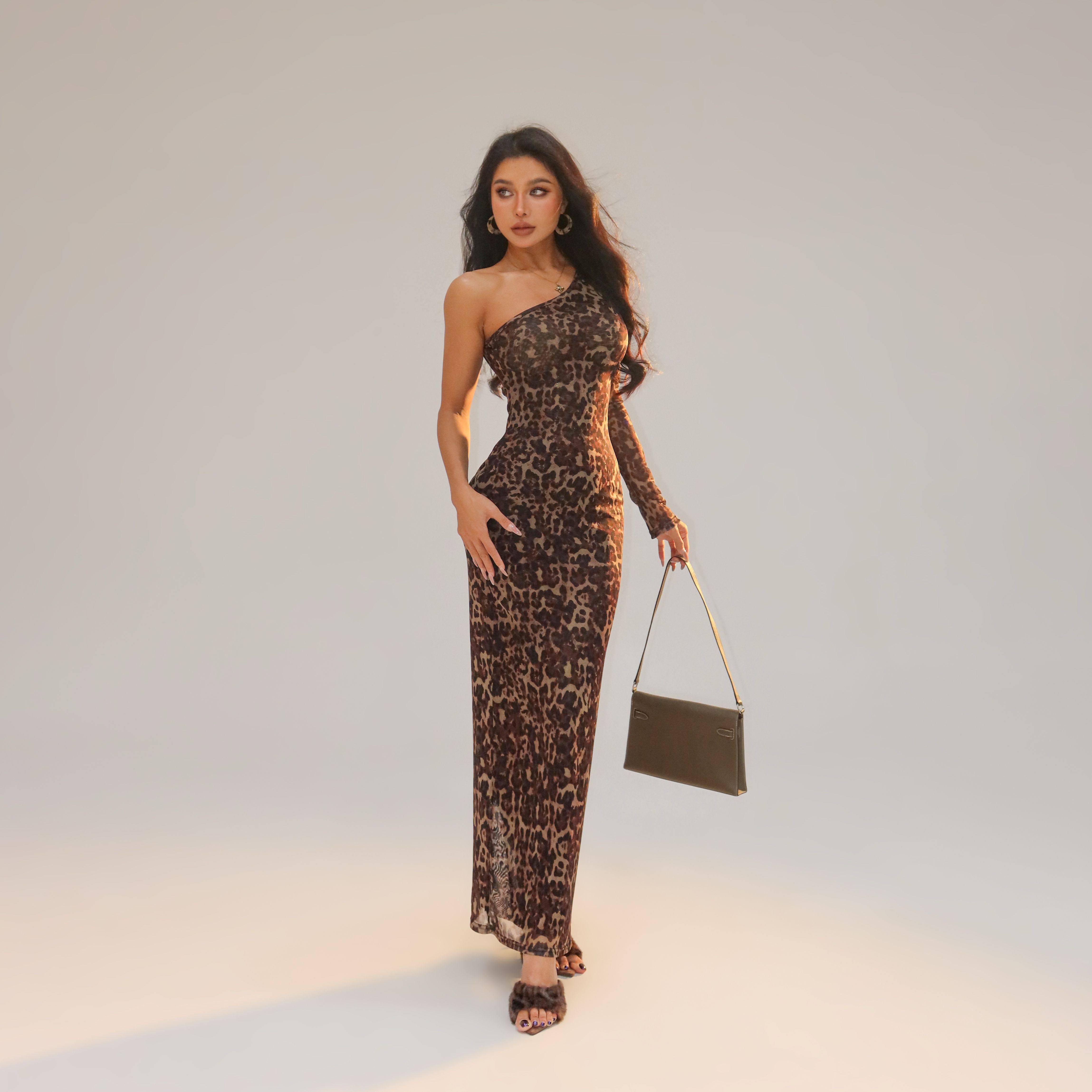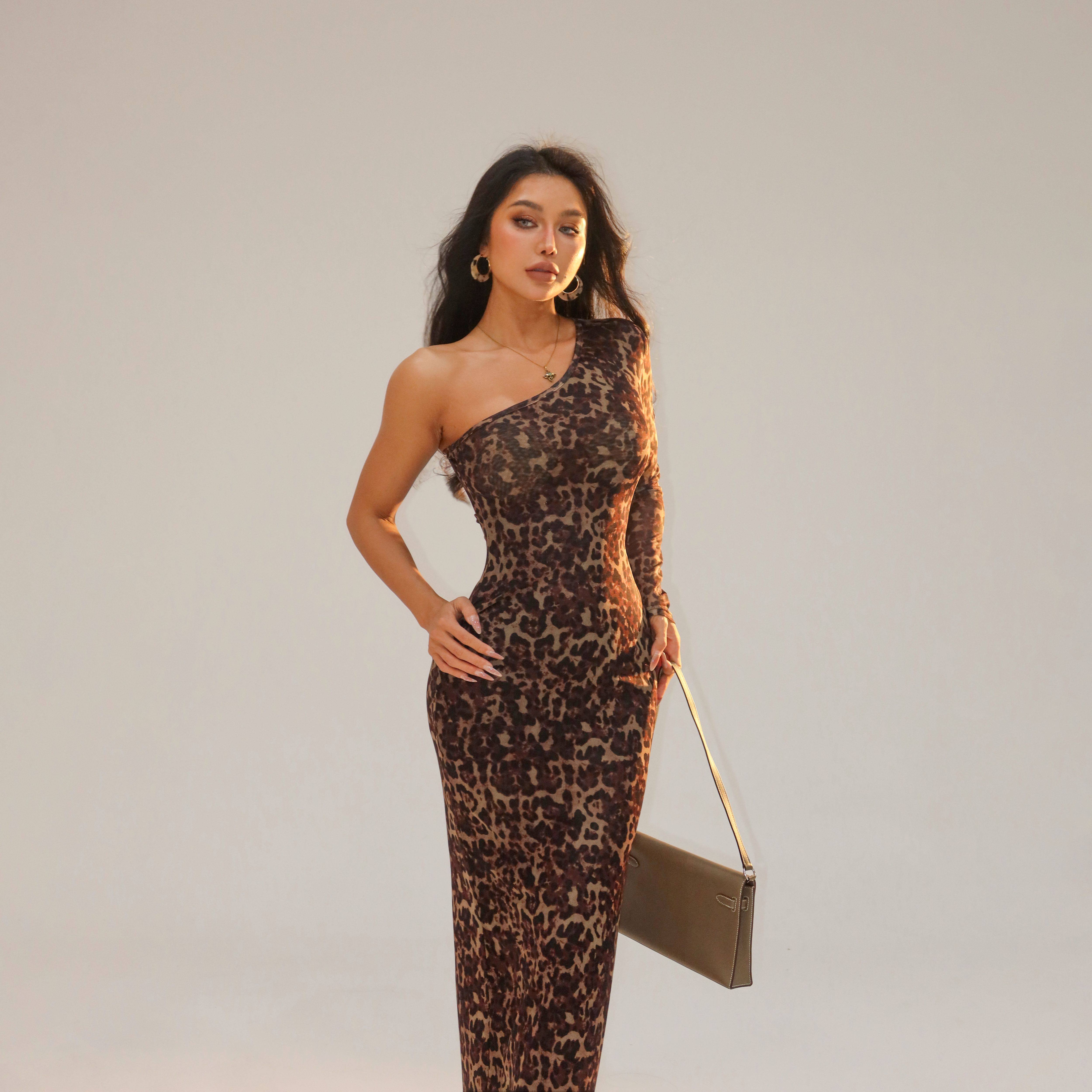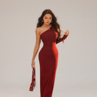 欧美辣妹性感抓绒斜肩单边连衣裙长裙25 新野之风 Y809 蜜蜜家
