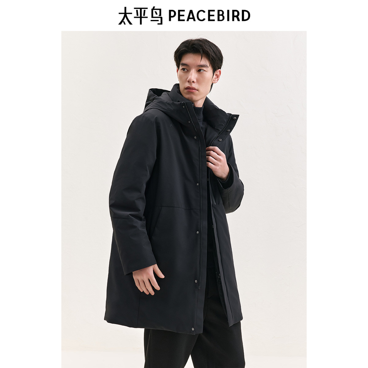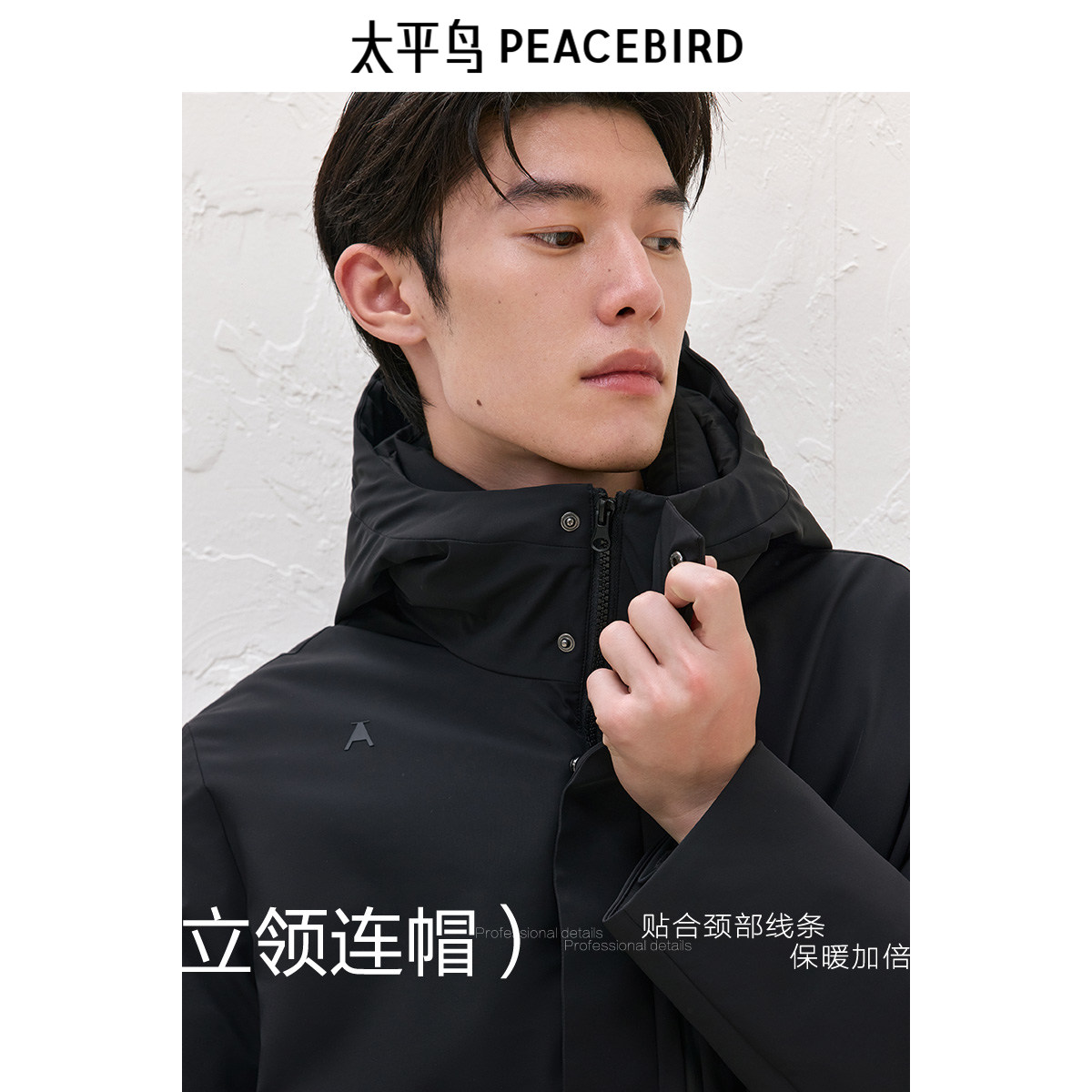 新款 商务羽绒服男2024年冬季 太平鸟男装 通勤连帽防寒服 中长款
