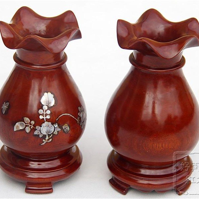 红木家具摆件花梨木木雕相贝花瓶实木中式 家居办公室干花瓶工艺品