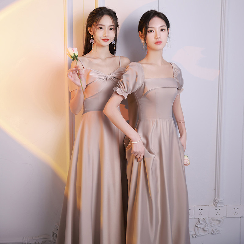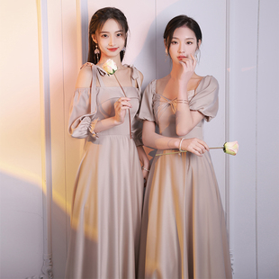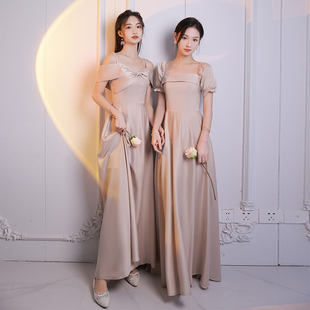 平时可穿姐妹团女 长版 伴娘服高级感2023年新款 缎面轻奢晚礼服冬季