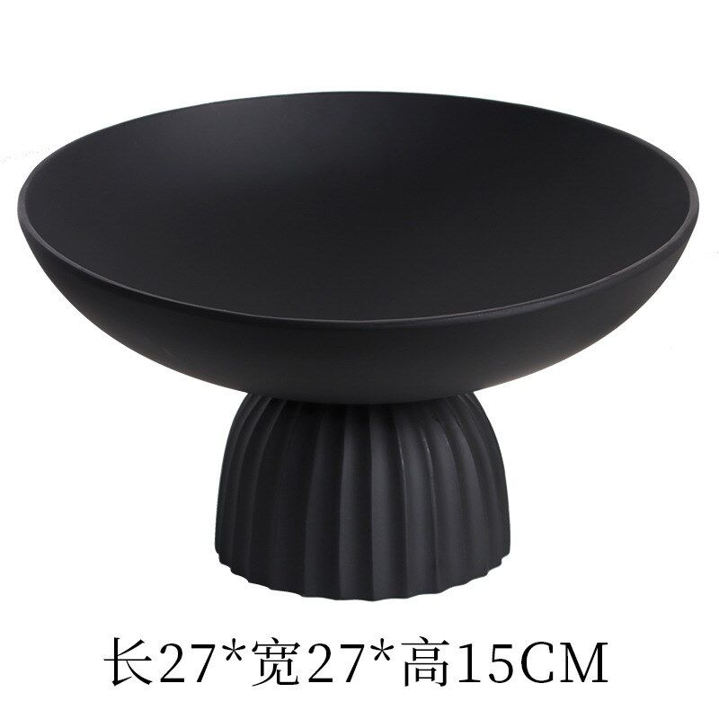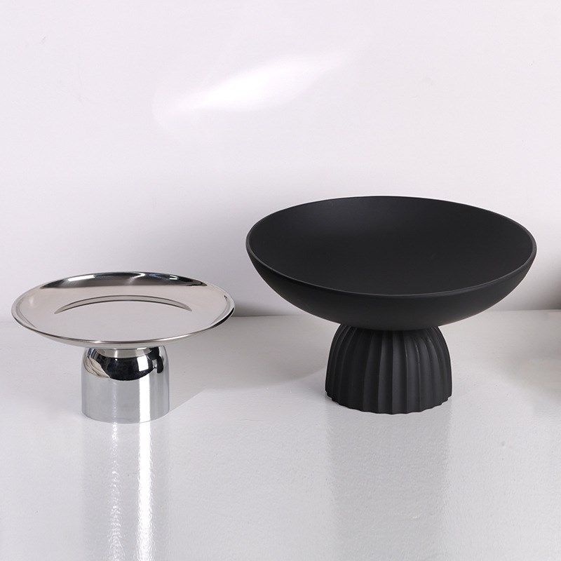 现代树脂黑色磨砂果盘银色金属 饰品摆件 样板间客厅茶几蛋糕盘装