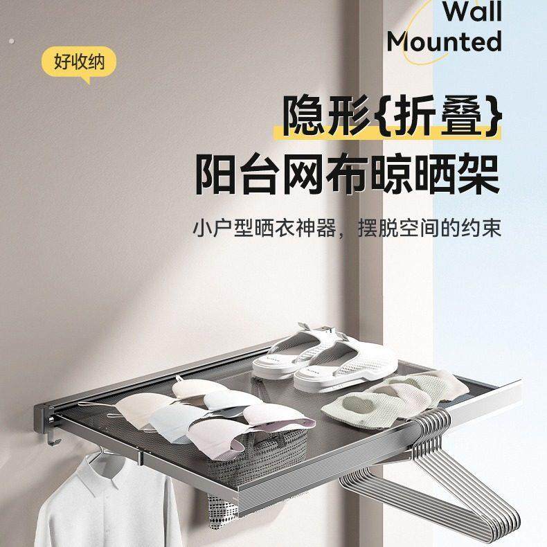 可折叠伸缩收纳架晾衣网小型卫生间置物架免打孔挂钩浴室收纳神器