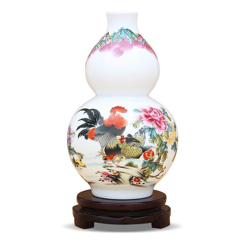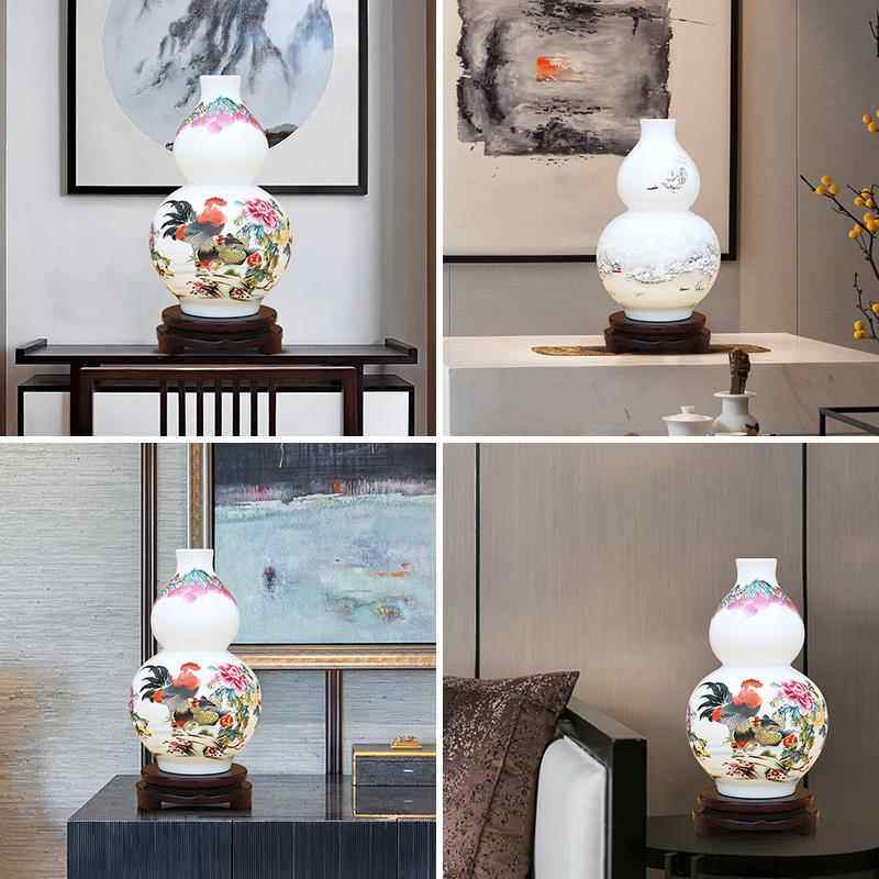 景德镇陶瓷器花瓶葫芦瓶摆件家居客厅酒柜装 饰品办公室工艺品摆设