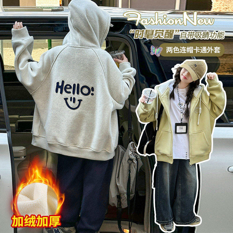 连帽针织上衣潮 韩版 女童外套春秋2026新款 儿童洋气时髦女大童春装