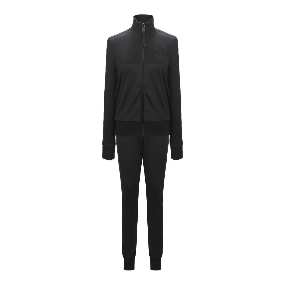 套装 香港直邮FENDI 长裤 Logo压纹休闲长袖 女士黑色叉肩休闲套装