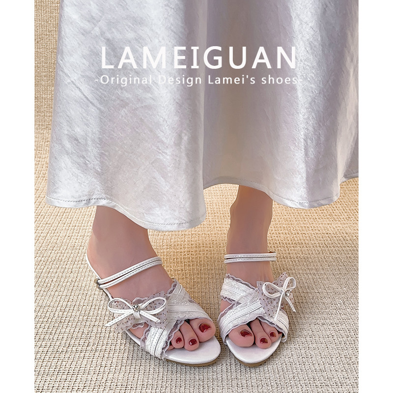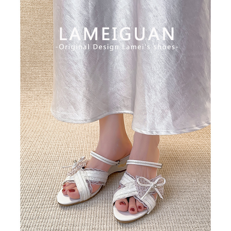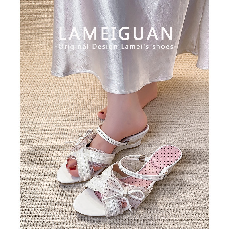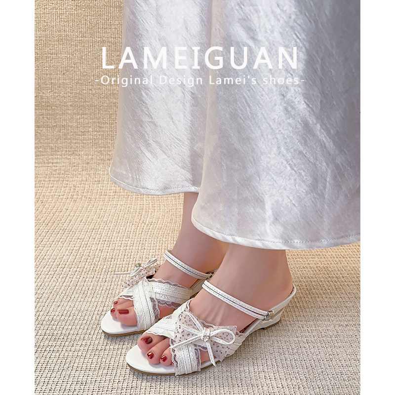 白色一字带拖鞋 新款 女外穿2026夏季 甜美设计感Lolita爱心坡跟凉鞋