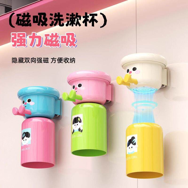 可爱磁吸牙刷杯架家用漱口杯牙刷架免打孔倒挂沥水架 倒置沥水
