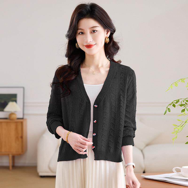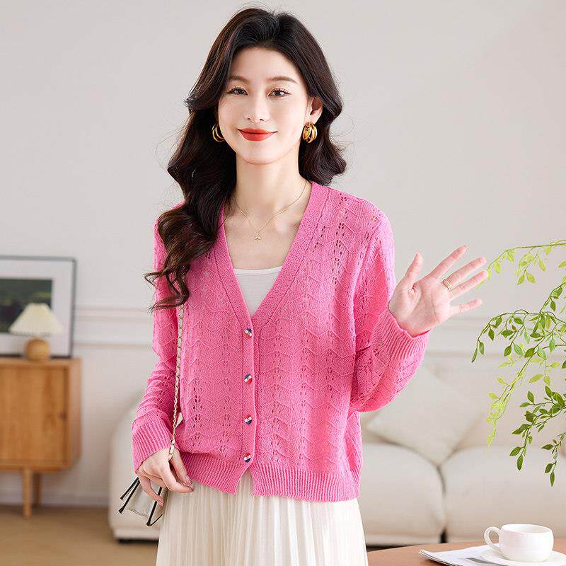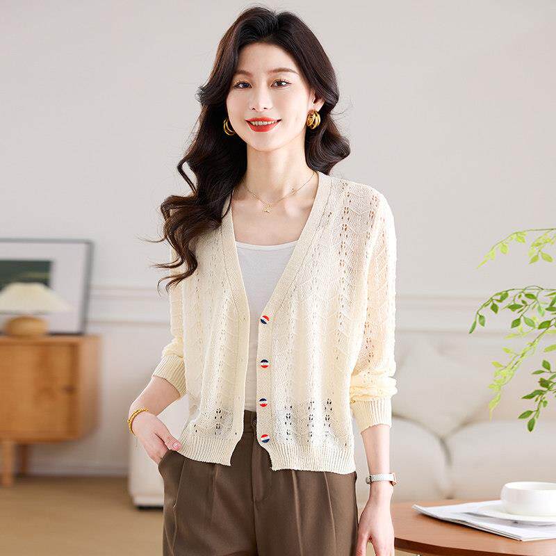 桑蚕丝小外套上衣 配裙子披肩防晒衣罩衫 冰丝镂空针织开衫 女夏薄款